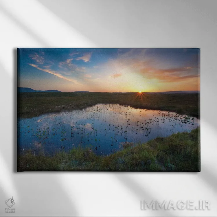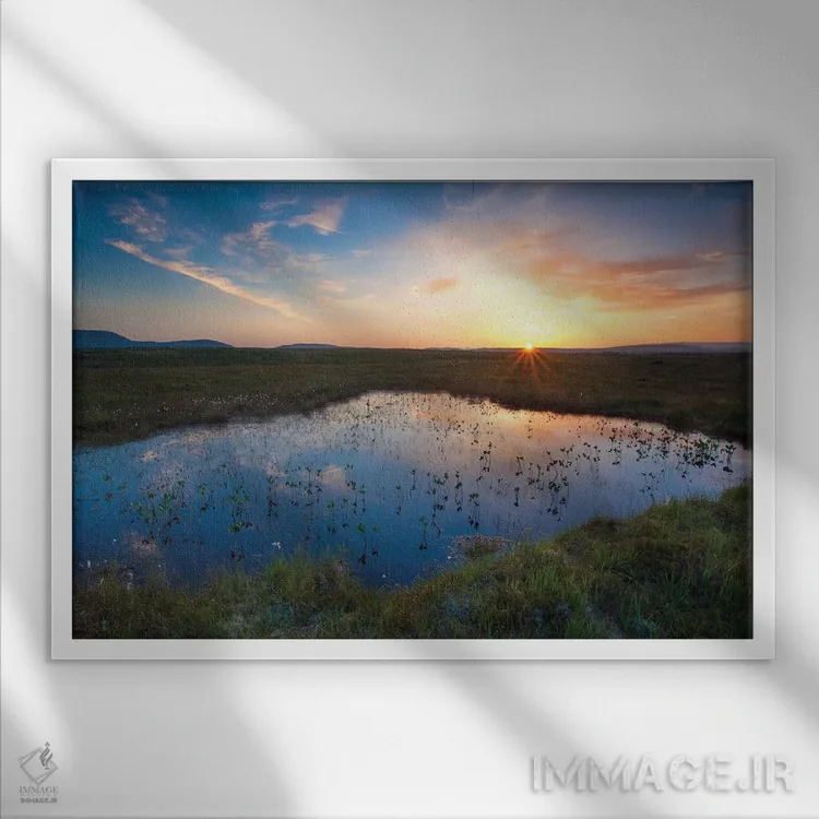 تابلو دکوراتیو غروب در حوضچه منطقه باتلاقی زیر کوه های نفین بگ، پارک ملی… اثر گارث مک کورمک