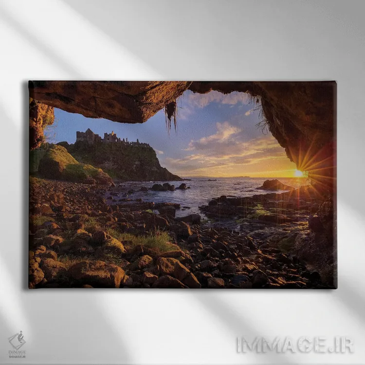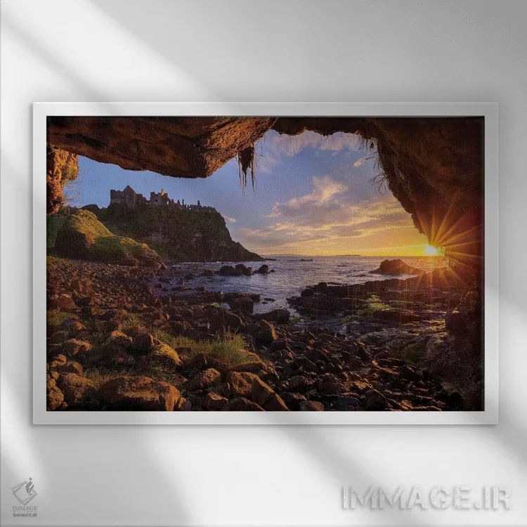 تابلو دکوراتیو قاب بندی غروب غارها در قلعه دانلوس، ساحل جاینت، شهرستان ا… اثر گارث مک کورمک