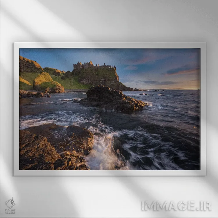 تابلو غروب زیر قلعه دانلوس اول، شهرستان انترم، ایرلند شمالی اثر گارث مک‌کورمک - نمای قاب‌دار سفید