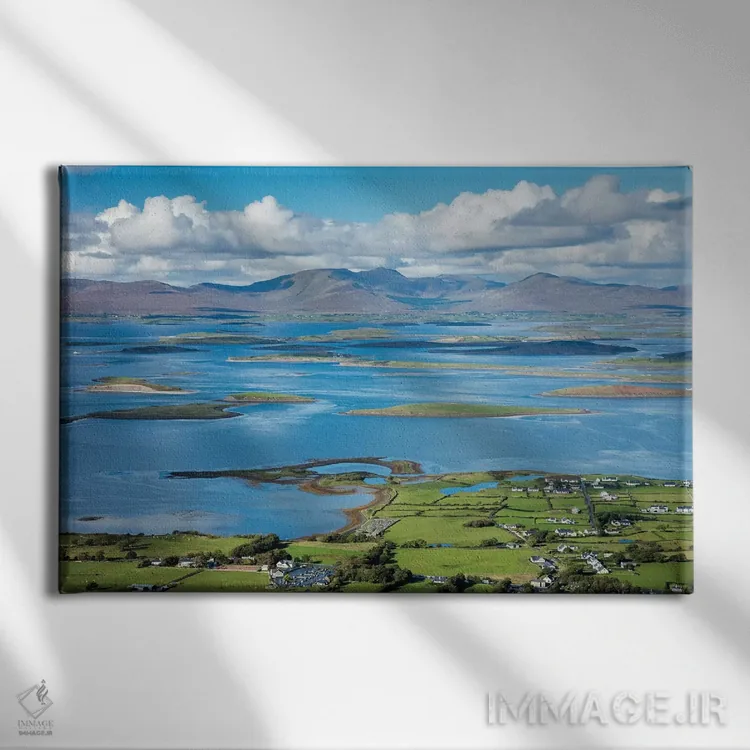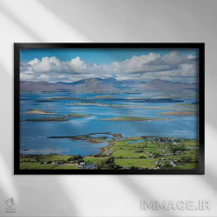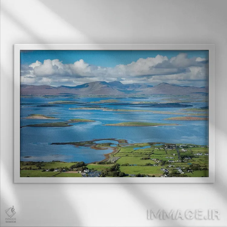 «نمای عرضی خلیج کلئو از قله کرو پاتریک، شهرستان مایو، ایرلند» اثرِ «گارث مککورمک» انتخابیست برای زمانی که به دیوار، شخصیت و جهت میدهد؛ برای اتاق کار و گوشهٔ مطالعه انتخابی عالی است. با مبلمان خنثی، تضاد دلنشینی میسازد.