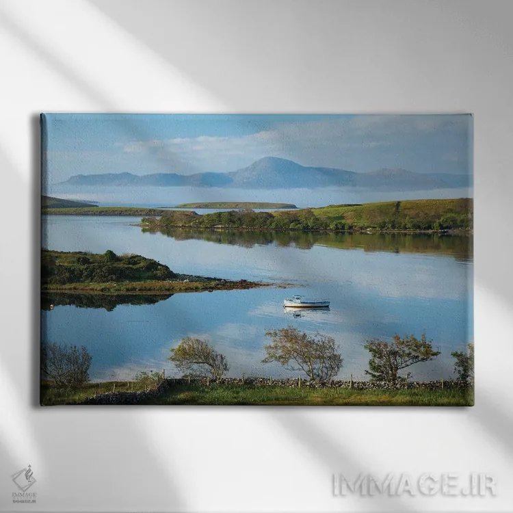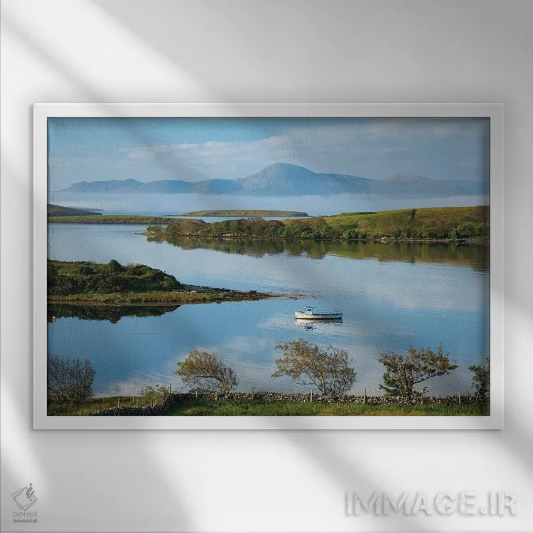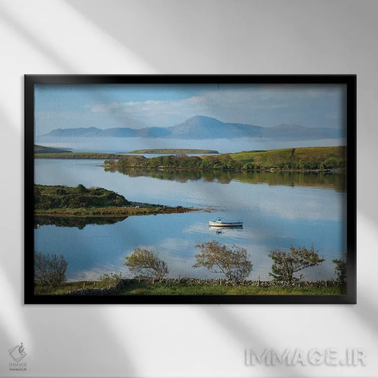 «منظرهٔ عرضی خلیج کلئو به سوی کرو پاتریک اول، شهرستان مایو، ایرلند» اثرِ «گارث مککورمک» میتواند جلوهٔ اتاق را یک پله حرفهایتر کند؛ برای نشیمنهای صمیمی و پذیراییهای شیک پیشنهاد میشود. با نور گرم یا سرد، خوانایی و وقارش را حفظ میکند.