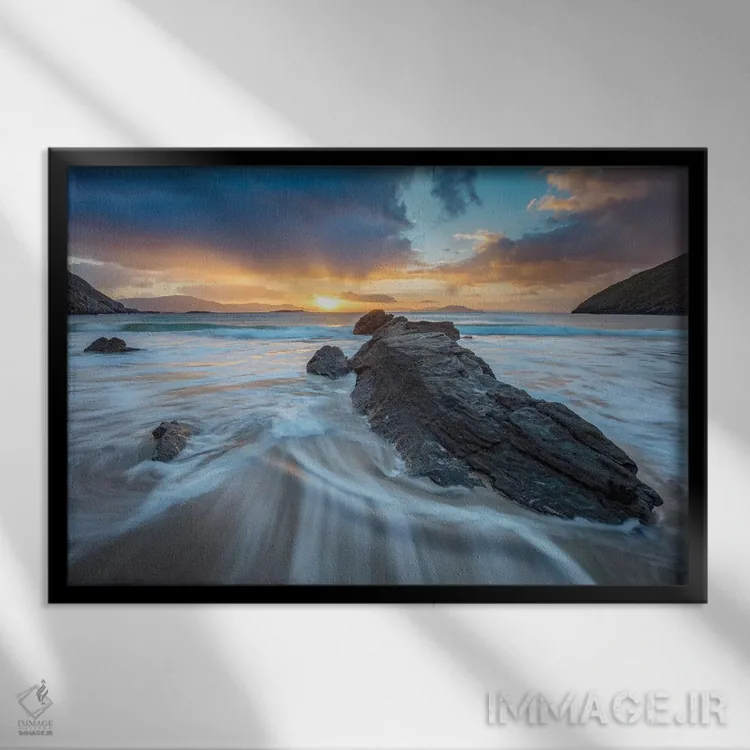 گاهی یک اثر کافیست تا فضا جمعوجور شود؛ «طلوع زمستانی اول، خلیج کیم، جزیره آکیل، شهرستان مایو، ایرلند» اثرِ «گارث مککورمک» حس گالریوار را بیسروصدا وارد خانه میکند؛ برای محیطهای کاری و استودیوهای خلاق پیشنهاد میشود. برای هدیه دادن هم انتخابی محترمانه و امن است.