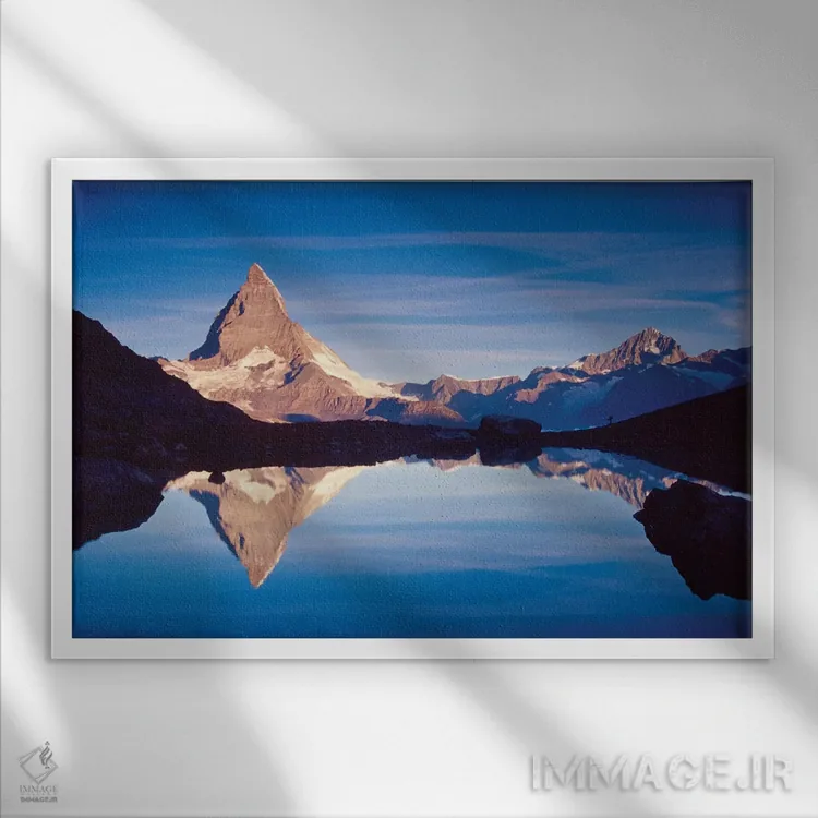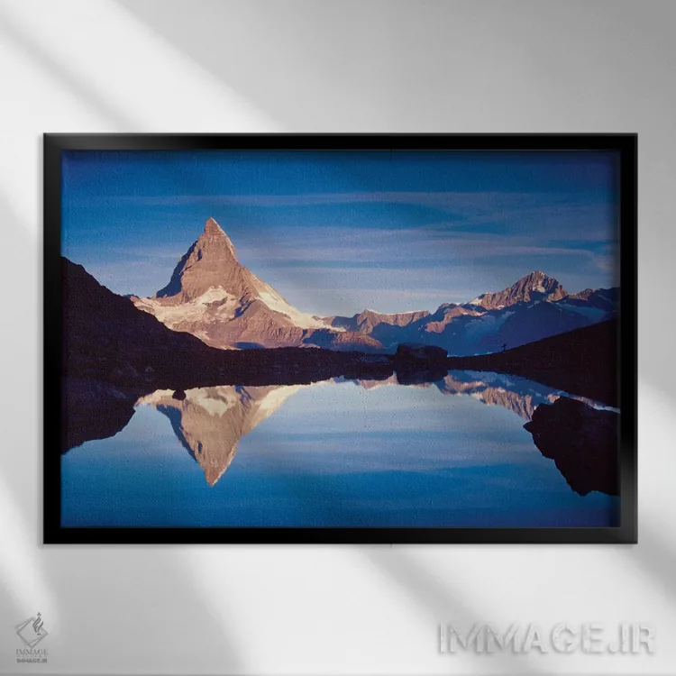 برای دیواری که میخواهید سلیقهتان را آرام و دقیق نشان بدهد، «بازتاب سپیدهدم ماترهورن، دریاچه ریفل، کانتون وله، سوئیس» اثرِ «گارث مککورمک» جلوهٔ دیوار را منسجمتر میکند؛ برای نشیمنهای صمیمی و پذیراییهای شیک پیشنهاد میشود. با نور گرم یا سرد، خوانایی و وقارش را حفظ میکند.