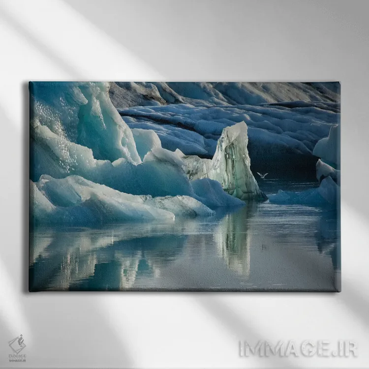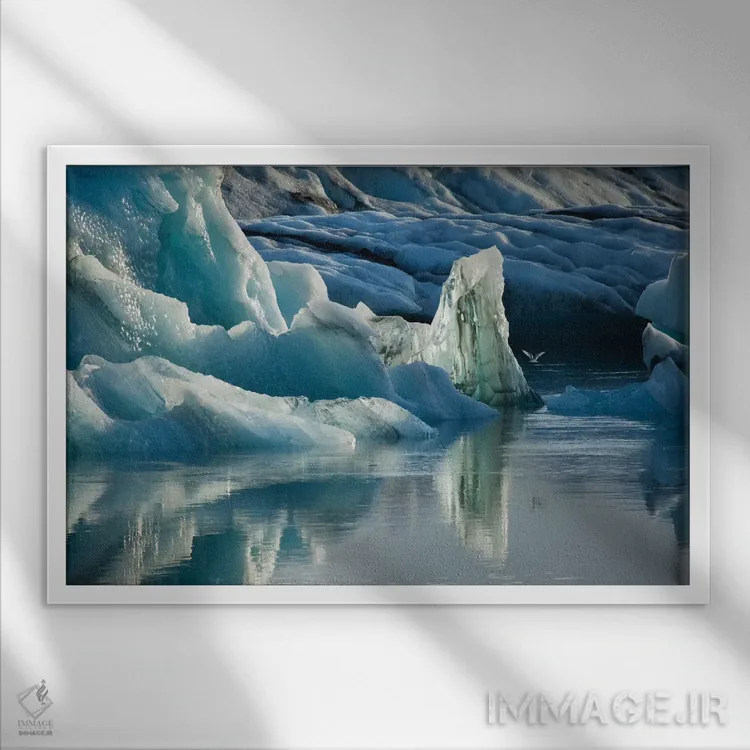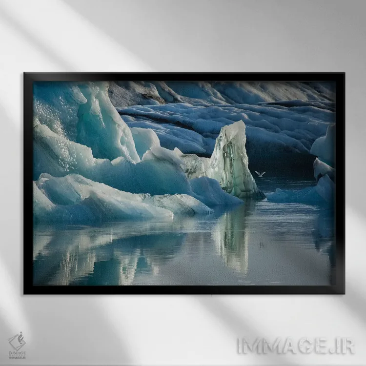 برای دیواری که دوست دارید «حرف داشته باشد»، «مجسمههای یخی طبیعی، دریاچه یخچالی جوکولسارلون، پارک ملی واتنایوکول، سودورلند، ایسلند» اثرِ «گارث مککورمک» جلوهٔ رنگها را طبیعیتر و متعادلتر نشان میدهد؛ برای فضاهای مدرن با خطوط ساده پیشنهاد میشود. در چیدمانهای مختلف، هماهنگپذیر و انعطافدار است.