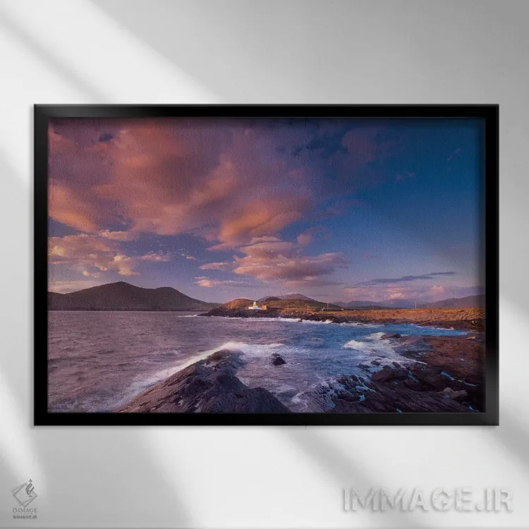 این تابلو با عنوان «غروب بالای فانوس دریایی کرامول پوینت، جزیره والنتیا، شهرستان کری، استان مانستر، جمهوری ایرلند» اثرِ «گارث مککورمک» تضادهای رنگی را خوشقوارهتر میکند؛ برای دیوارهای گالریوار و ترکیب چند اثر پیشنهاد میشود. حضورش روی دیوار «مرتب» است؛ نه پر سر و صدا، نه بیاثر.