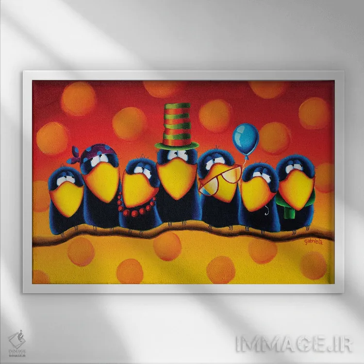 وقتی چیدمان را با دقت میچینید، «جلسه خانوادگی» اثرِ «گابریلا الگعفری» بین نور و رنگ، تعادل خوشنشینی میسازد؛ برای فضاهای کمنور که به «نقطهٔ روشن» نیاز دارند پیشنهاد میشود. به فضا حس «گالری خانگی» میدهد، بدون اینکه اغراق کند.