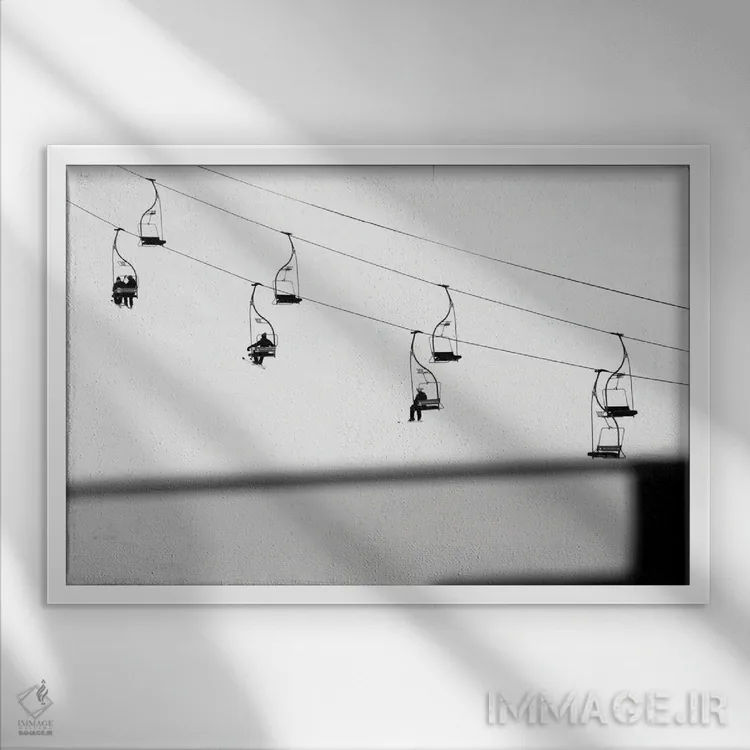«صحنه اسکی» اثرِ «گیلیارد برسسان» در فضای عکاسی سیاهوسفید، روی نور و کنتراست تکیه میکند؛ موضوعِ این اثر برای دکورهای مینیمال عالی است.