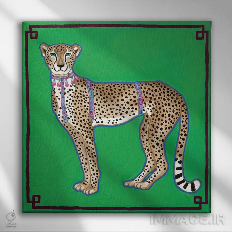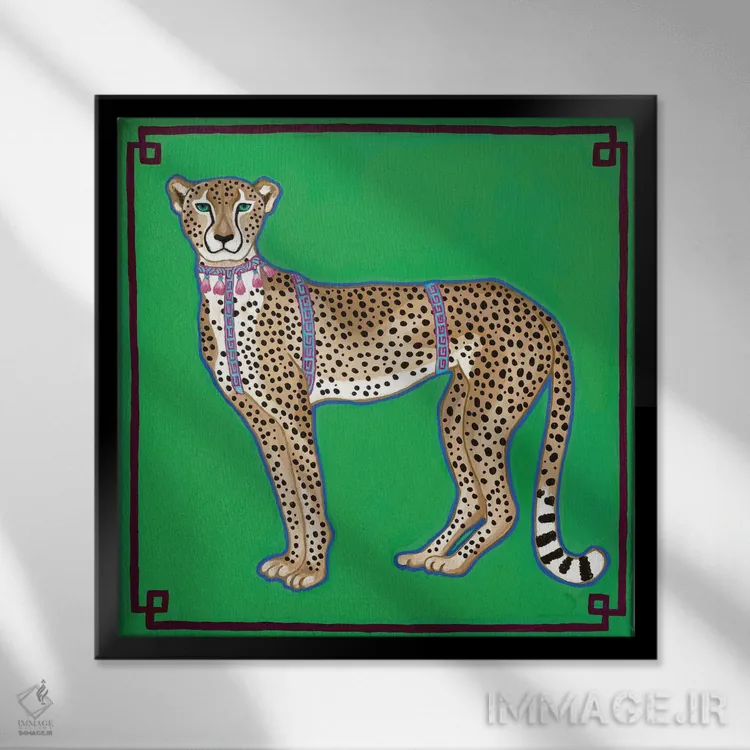 تابلو یوزپلنگ چینی روی سبز اثر گرین ارکید بوتیک (بوتیک هنری)
