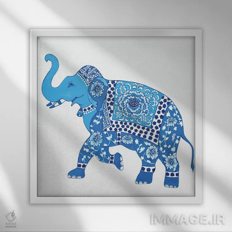 تابلو دکوراتیو فیل چینی آبی و سفید ۱ اثر گرین ارکید بوتیک