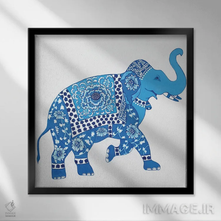 تابلو دکوراتیو فیل چینی آبی و سفید ۲ اثر گرین ارکید بوتیک