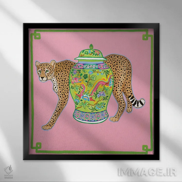 تابلو یوزپلنگ چینی مدرن با کوزه زنجبیلی اژدها اثر گرین ارکید بوتیک (بوتیک هنری)