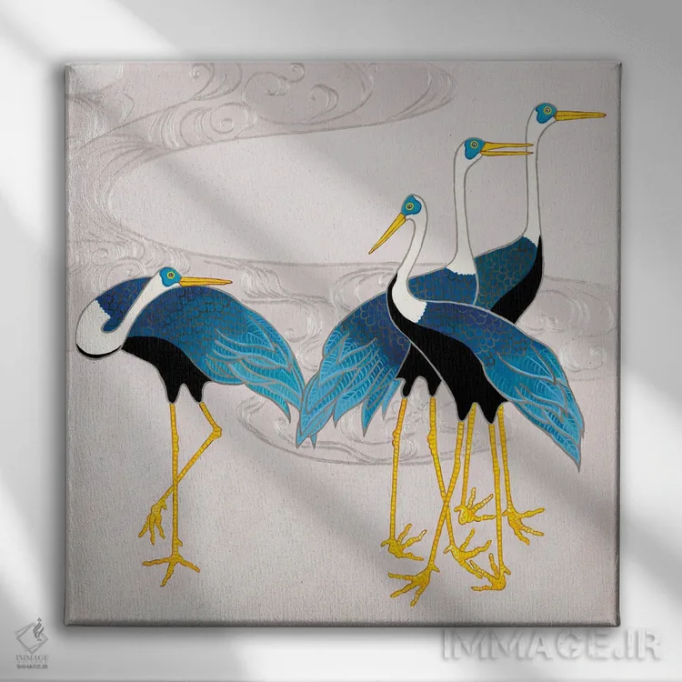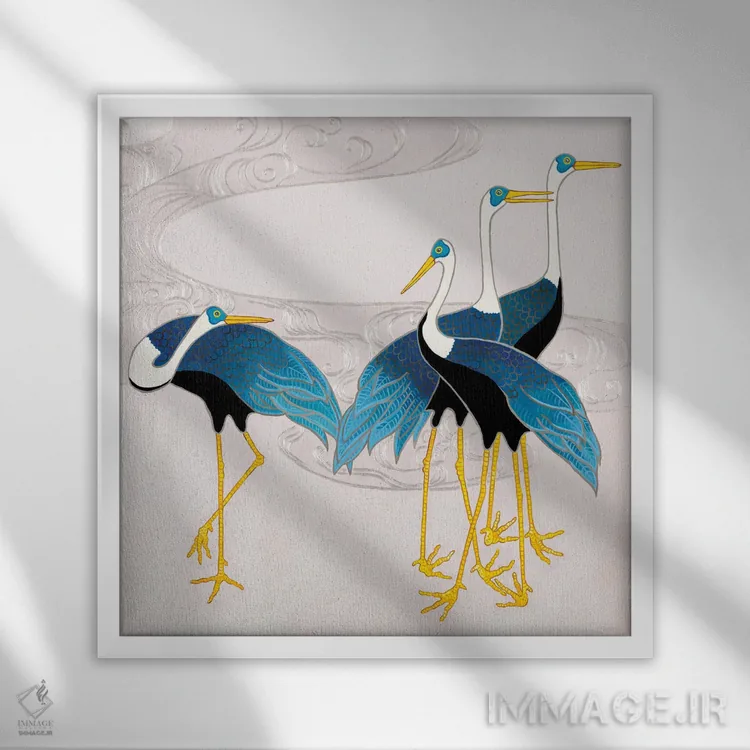 برای دکورهای صمیمی، «درناهای ژاپنی آبی و سفید روی ارغوانی ۲» اثرِ «گرین ارکید بوتیک (بوتیک هنری)» برای دکورهای مینیمال، یک نقطهٔ توجه میسازد؛ برای اتاق کودک (بدون لحن کودکانه) انتخابی خوشسلیقه است. هر بار نگاهش میکنید، یک جزئیات تازه به چشم میآید.