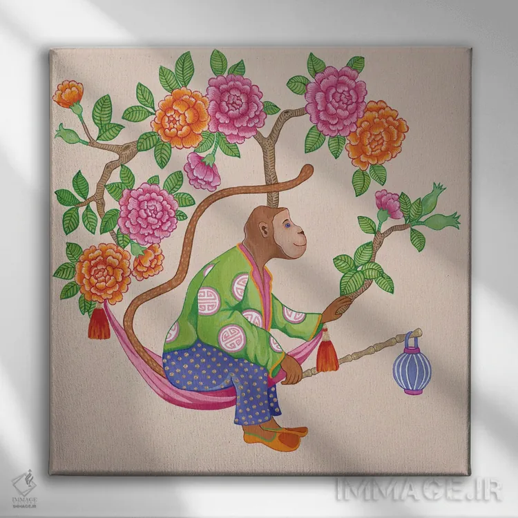 تابلو میمونهای چینی با گل صدتومانی و رز ۱ اثر گرین ارکید بوتیک (بوتیک هنری)