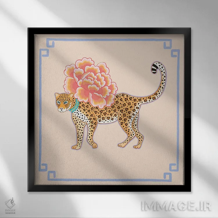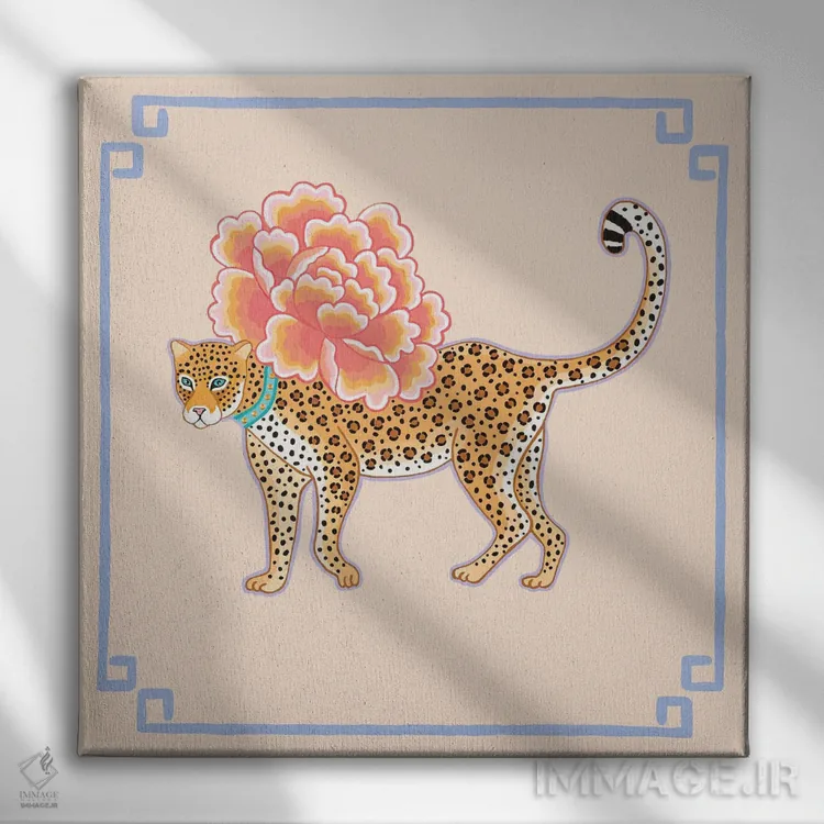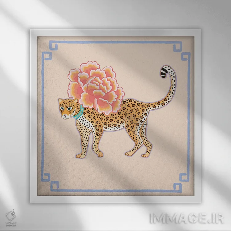 تابلو یوزپلنگ چینی با گل صدتومانی اثر گرین ارکید بوتیک (بوتیک هنری)