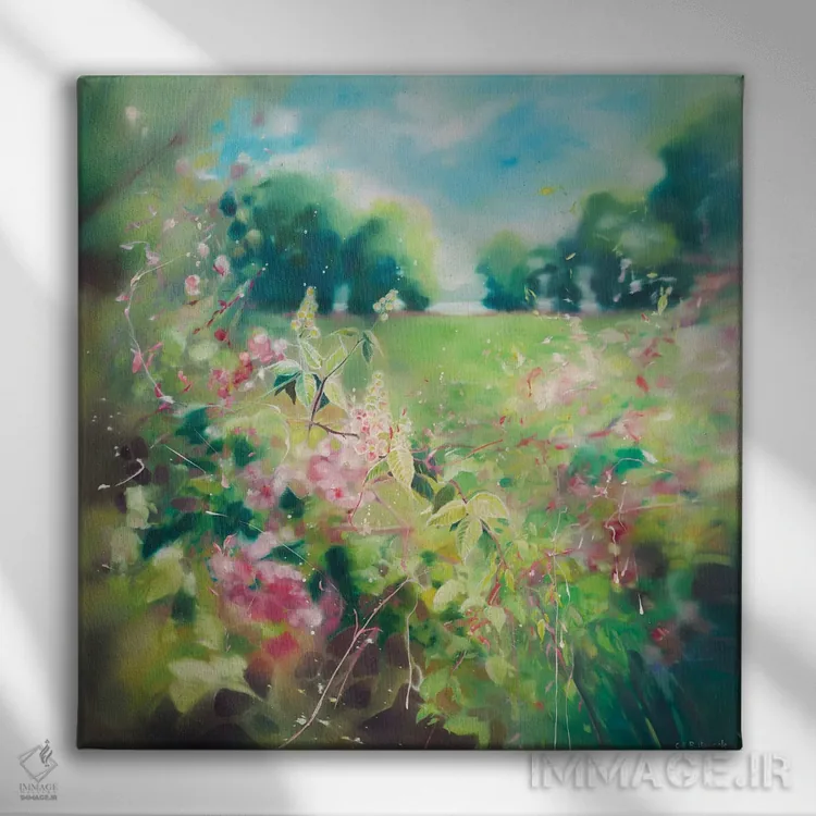 «از دل پرچین؛ روستا در بهار» اثرِ «گیل بوستامانته» با رویکرد معاصر، برای دفتر کار و خانههای مدرن انتخابی مناسب است؛ موضوعِ این اثر هم هویت میدهد.
