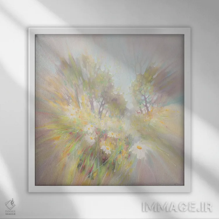 براساس پالت گرم اثر، قاب بلوط روشن (چوبی) پیشنهاد اول است و استخوانی ملایم مکمل. برای سفارشهای پروژهای با ابعاد و قابهای اختصاصی با ایماژ در تماس باشید.