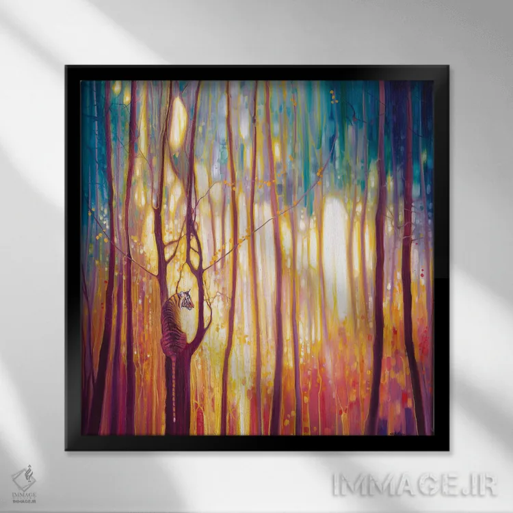 براساس پالت ترکیبی اثر، قاب تیک گرم (چوبی) پیشنهاد اول است و مشکی مات (فریم متوسط) مکمل. برای سفارشهای پروژهای با ابعاد و قابهای اختصاصی با ایماژ در تماس باشید.