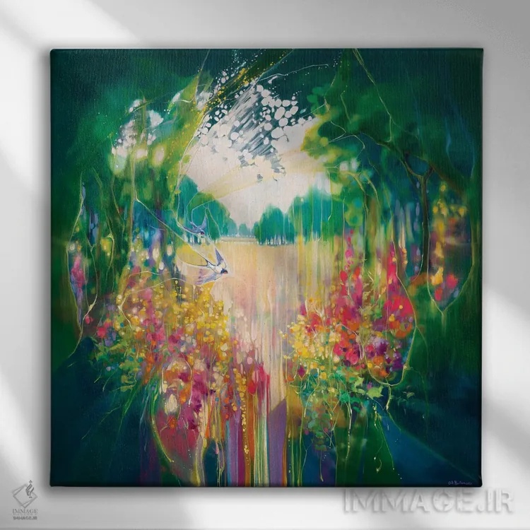 تابلو خلقت، باغی پنهان با چلچله و گلها اثر گیل بوستامانته
