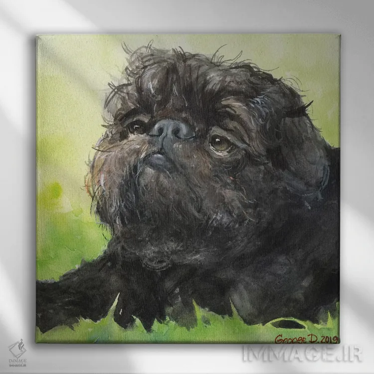 تابلو دکوراتیو بروسل گریفون سیاه با پس زمینه اثر جورج دیاچنکو