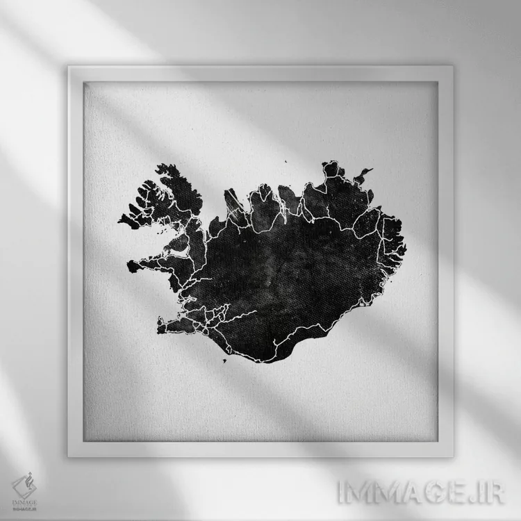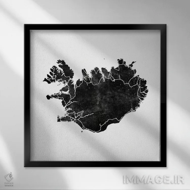 اگر دکور شما مدرن و کمرنگ است، «نقشهٔ سیاه ایسلند، مشکی II (مربع)» اثرِ «مونیکا استریگل» با موضوعِ این اثر در فضای دیجیتال سیاهوسفید گزینهی خوبی است.