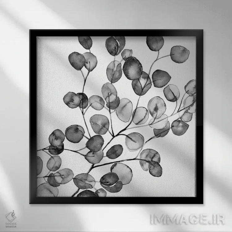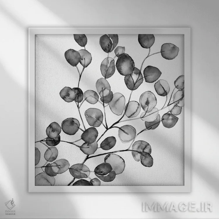 تابلو اکالیپتوس آبرنگی سیاه و سفید (مربع) اثر مونیکا استریگل