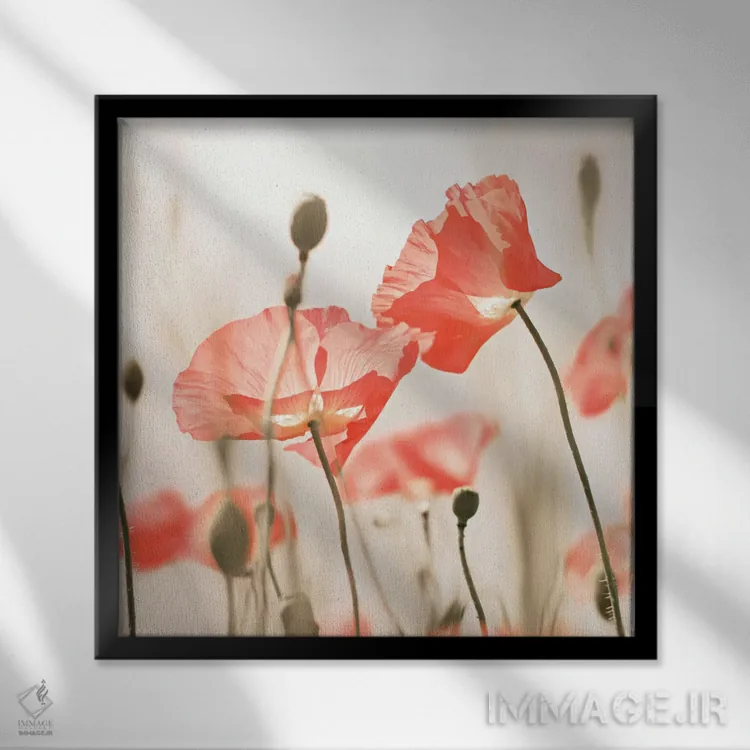 در «گلهای شقایق هلوئی (مربع)» اثرِ «مونیکا استریگل»، گلها و گیاهان به دیوار، روشناییِ ملایم و دلنشین میدهد؛ برای دکورهای اسکانباوراوی انتخابی خوشسلیقه است. با قاب روشن یا چوبی، حس طبیعیتری پیدا میکند.