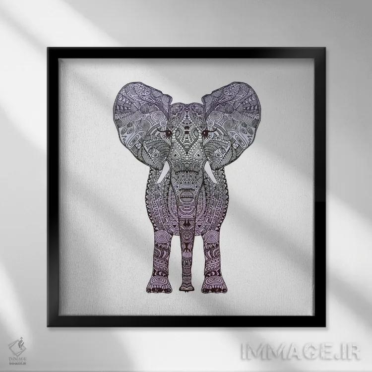 تابلو فیل بنفش اثر مونیکا استریگل - نمای قاب‌دار مشکی