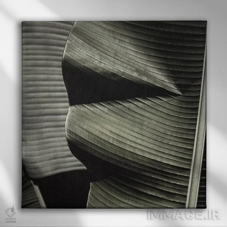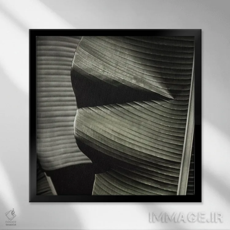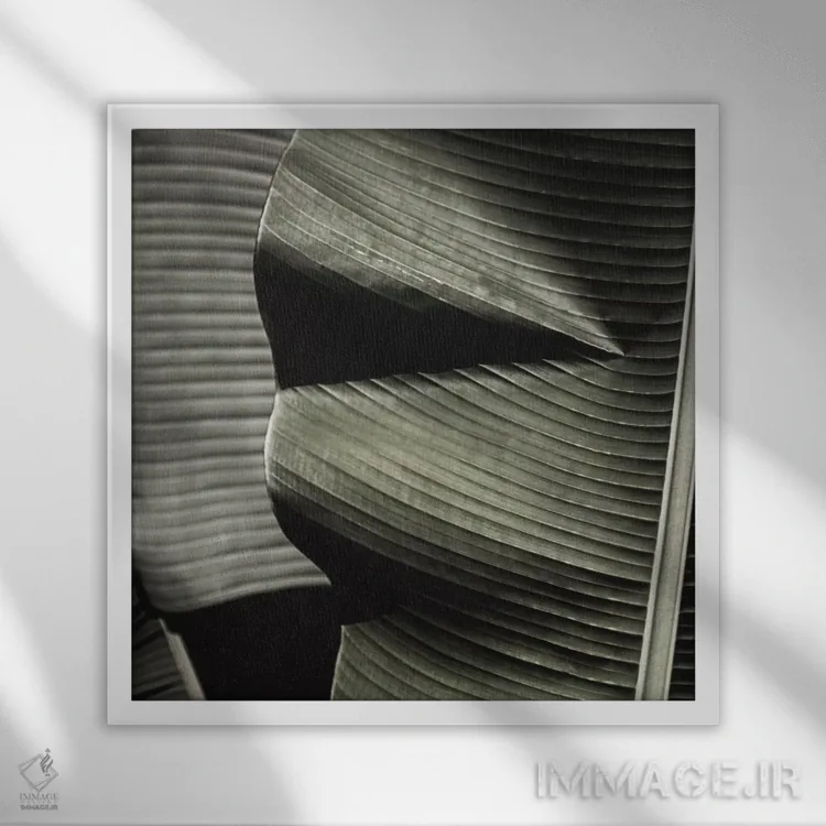 برای دیواری که میخواهید نرمتر دیده شود، «برگ موز سبز (مربع)» اثرِ «مونیکا استریگل» جزئیات نزدیک را چشمنواز نشان میدهد؛ برای خانههایی با نور طبیعی انتخابی خوشسلیقه است. در کنار گیاهان آپارتمانی، هماهنگتر هم میشود.