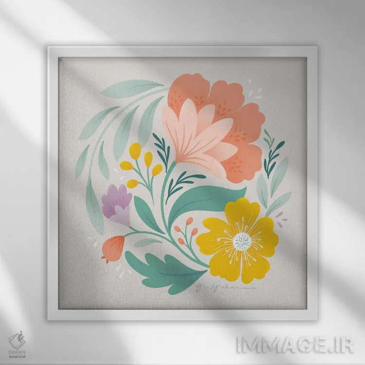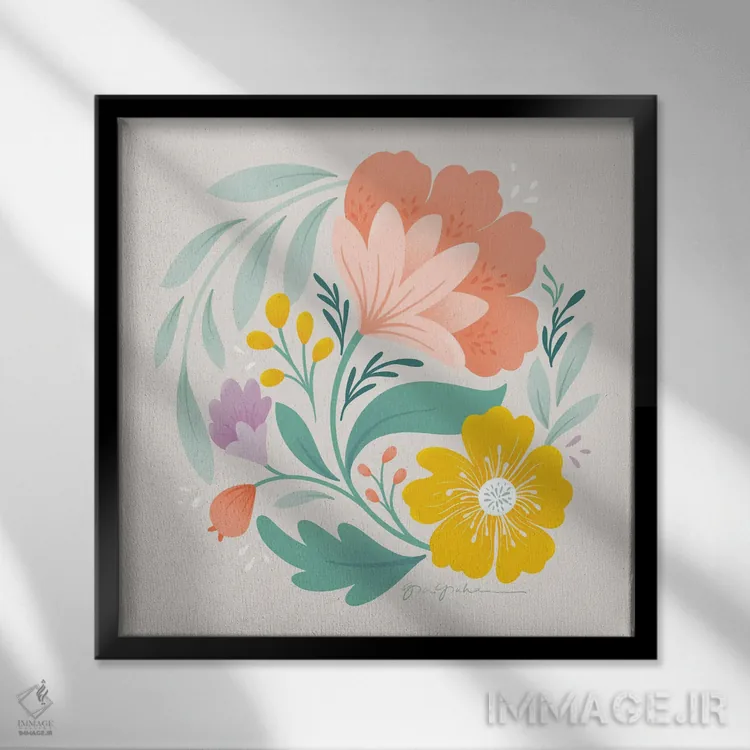 براساس پالت ترکیبی اثر، قاب تیک گرم (چوبی) پیشنهاد اول است و مشکی مات (فریم متوسط) مکمل. برای سفارشهای پروژهای با ابعاد و قابهای اختصاصی با ایماژ در تماس باشید.