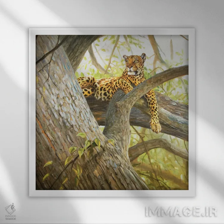 براساس پالت ترکیبی اثر، قاب بلوط روشن (چوبی) پیشنهاد اول است و استخوانی ملایم مکمل. برای سفارشهای پروژهای با ابعاد و قابهای اختصاصی با ایماژ در تماس باشید.