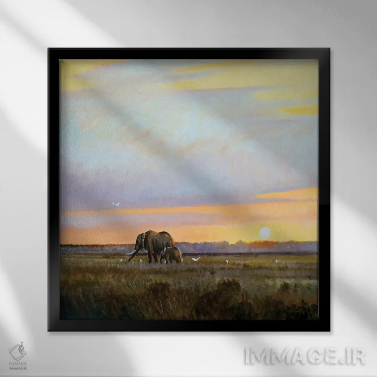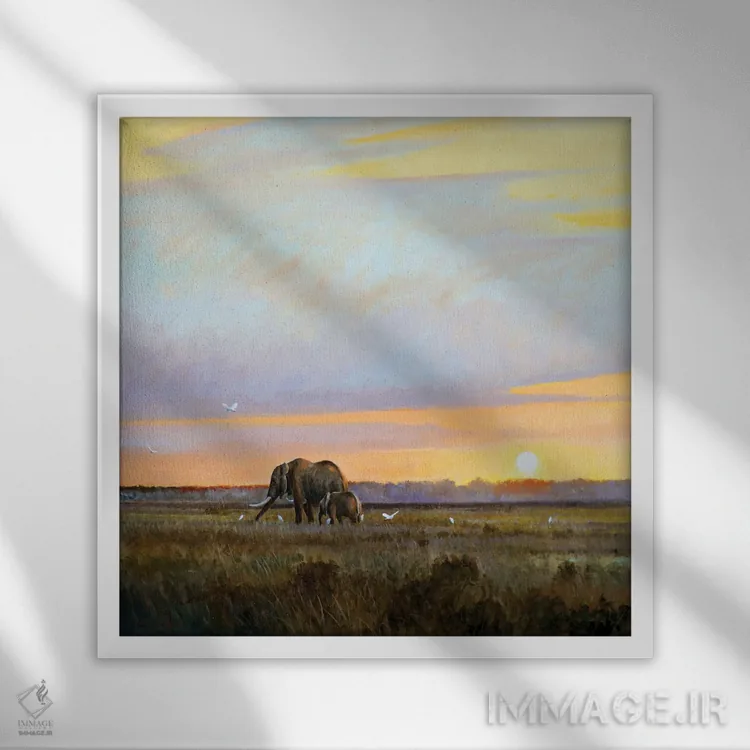 براساس پالت گرم اثر، قاب بلوط روشن (چوبی) پیشنهاد اول است و استخوانی ملایم مکمل. برای سفارشهای پروژهای با ابعاد و قابهای اختصاصی با ایماژ در تماس باشید.