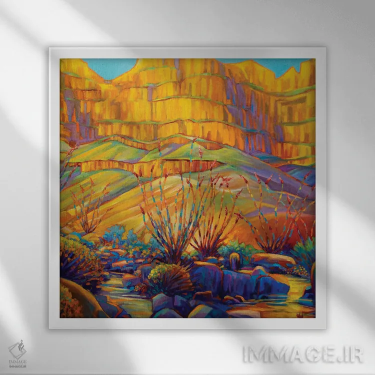براساس پالت ترکیبی اثر، قاب تیک گرم (چوبی) پیشنهاد اول است و مشکی مات (فریم متوسط) مکمل. برای سفارشهای پروژهای با ابعاد و قابهای اختصاصی با ایماژ در تماس باشید.