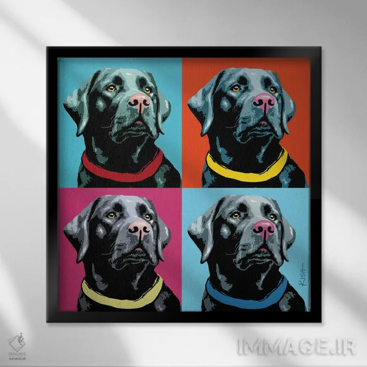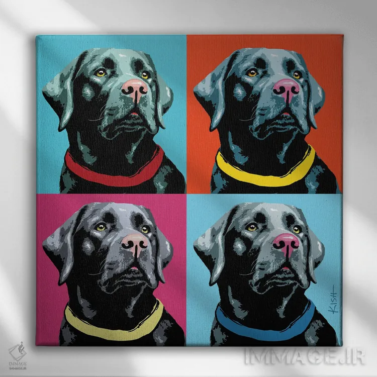 تابلو چهار لبرادور مشکی ووفهول (بازی با وارهول و صدای سگ) اثر گرچن کیش سرانو