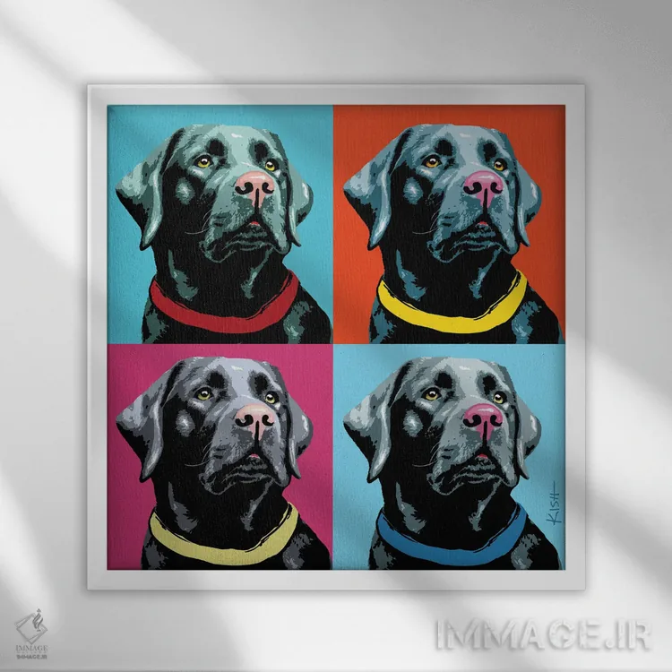 برای اتاقی که به یک عنصر دوستداشتنی نیاز دارد، «چهار لبرادور مشکی ووفهول (بازی با وارهول و صدای سگ)» اثرِ «گرچن کیش سرانو» به فضا، گرمیِ ملایم اضافه میکند؛ برای اتاق کودک (بدون لحن کودکانه) انتخابی خوشسلیقه است. هر بار نگاهش میکنید، یک جزئیات تازه به چشم میآید.