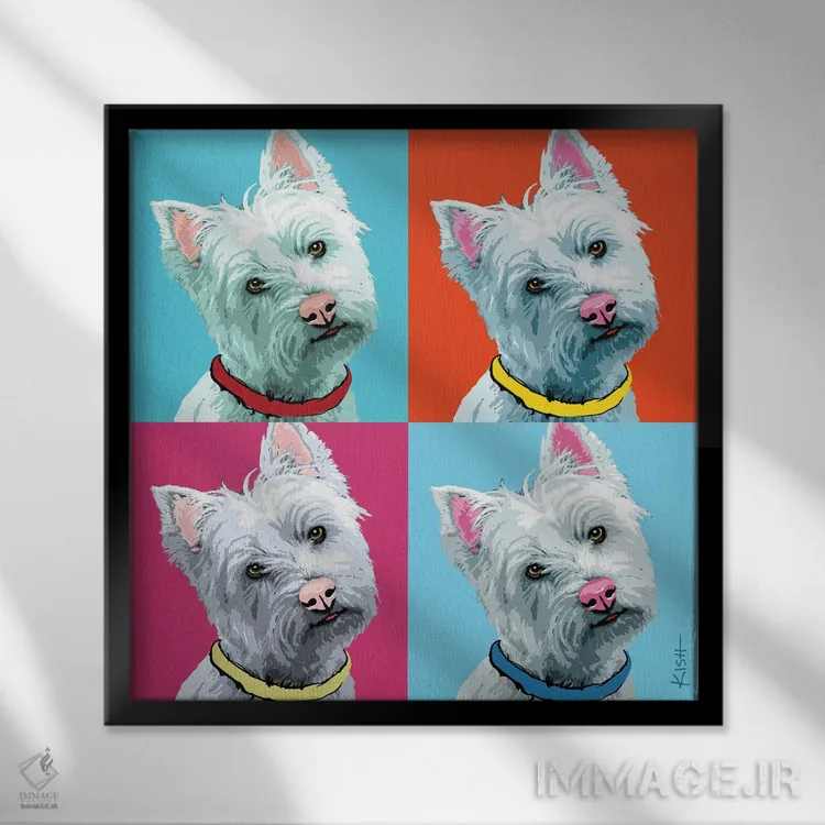 برای دیوارهای ساده، «چهار وِستی ووفهول (بازی با وارهول و صدای سگ)» اثرِ «گرچن کیش سرانو» گرما و شخصیت به فضا اضافه میکند؛ برای دیوار کنار میز کار انتخابی خوشسلیقه است. با نورپردازی نقطهای، جذابتر هم میشود.