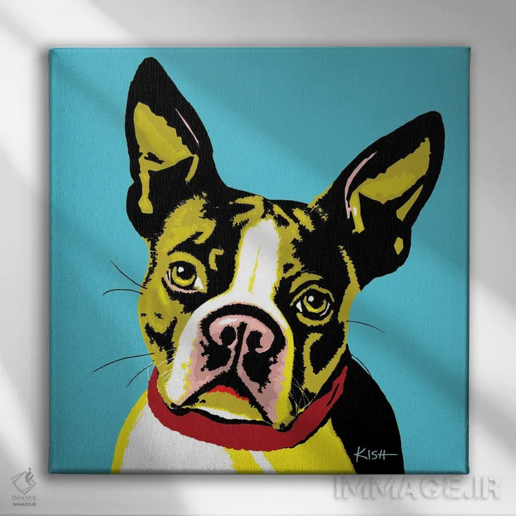 تابلو دکوراتیو بوستون تریر سبزآبی ووف هول اثر گرچن کیش سرانو