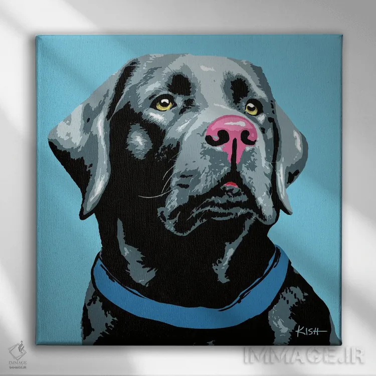 تابلو لبرادور مشکی آبی ووفهول اثر گرچن کیش سرانو
