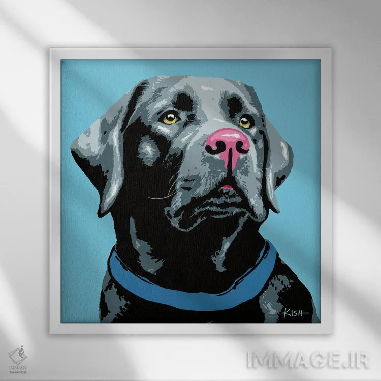 اگر میخواهید دیوار کمی سرزندگیِ محترمانه داشته باشد، «لبرادور مشکی آبی ووفهول» اثرِ «گرچن کیش سرانو» در کنار رنگهای خنثی، تضاد دلچسبی میسازد، برای دیوار کنار میز کار گزینهٔ مناسبیست. به دیوار، قصه میدهد—اما قصهای آرام و شیک.