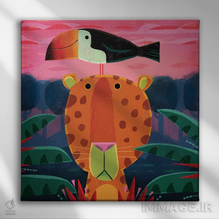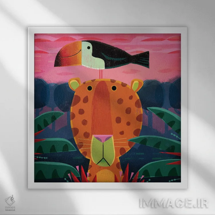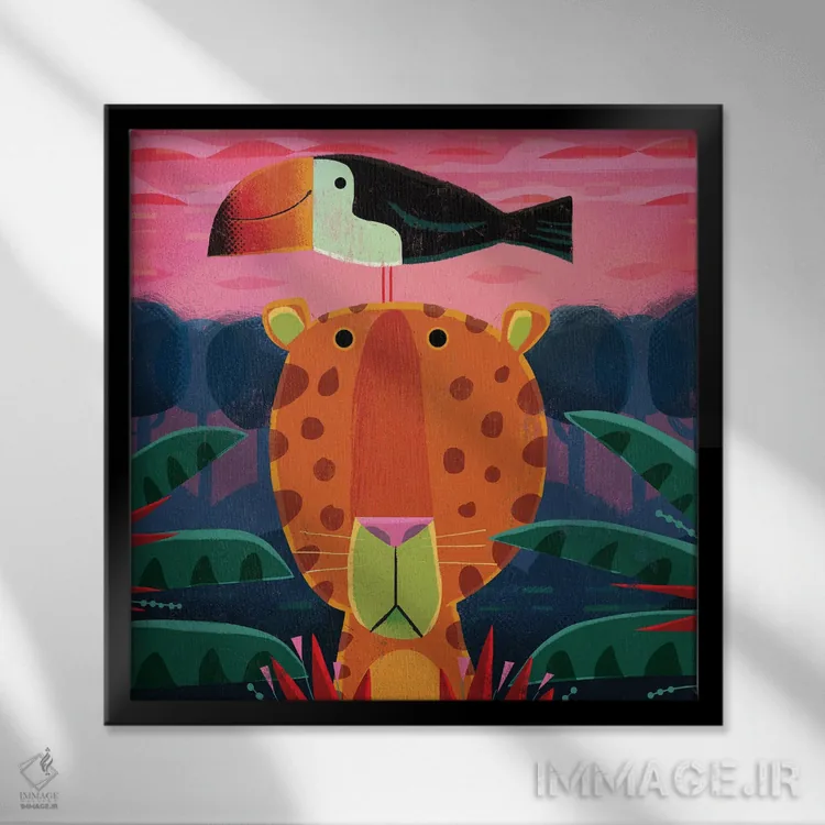 اگر میخواهید دیوار کمی سرزندگیِ محترمانه داشته باشد، «پلنگ با توکان مزاحم» اثرِ «گارث لوکاس» به دیوار، انرژیِ نرم و زنده میدهد، برای دکورهایی با رنگهای خنثی گزینهٔ مناسبیست. هم فضا را گرم میکند، هم شلوغش نمیکند.