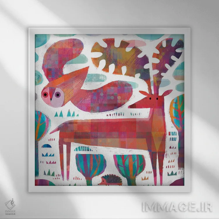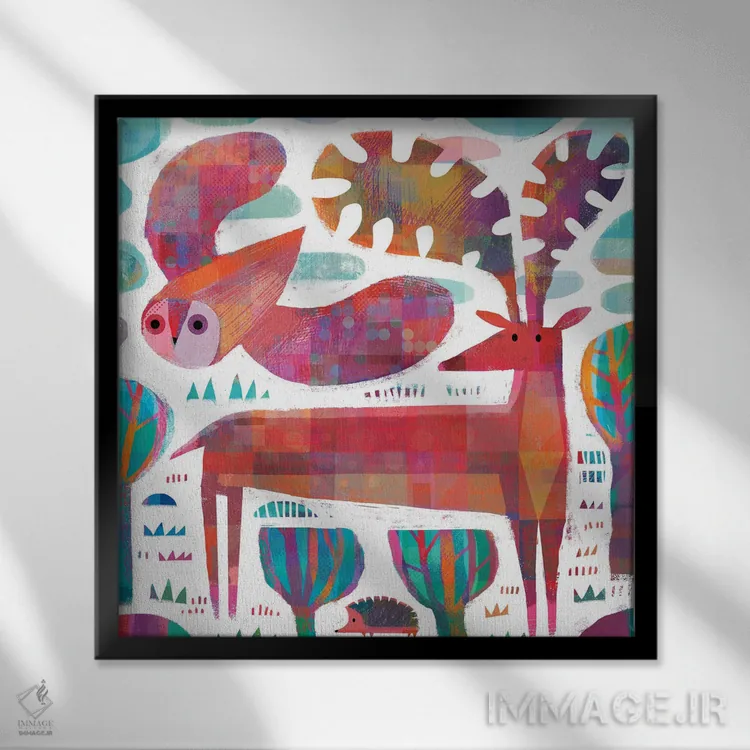 در «جغد، گوزن و خارپشت» اثرِ «گارث لوکاس»، حضور حیوانات به دیوار، انرژیِ نرم و زنده میدهد؛ برای کافههای کوچک و صمیمی انتخابی خوشسلیقه است. حسش صمیمی است، اما کیفیتش جدی و خوشپرداخت.