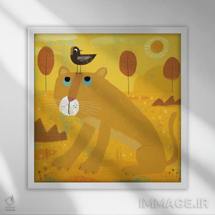 برای دیوارهای ساده، «پلنگ با بابولینک مزاحم» اثرِ «گارث لوکاس» یک لبخند ریز به چیدمان میدهد؛ برای اتاق بازی یا گوشهٔ مطالعه انتخابی خوشسلیقه است. اگر دنبال اثر دوستداشتنیِ «بیغلو» هستید، این یکی دقیق مینشیند.