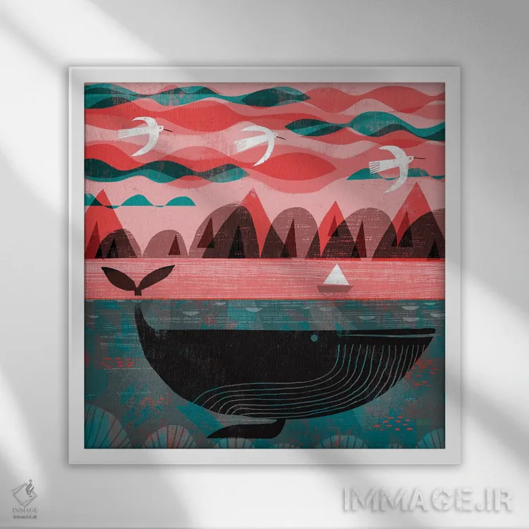 این اثر با عنوان «نهنگ با آسمان صورتی» اثرِ «گارث لوکاس» بافت و جزئیات را طوری نشان میدهد که نگاه میماند؛ برای دیوار کنار میز کار انتخابی خوشسلیقه است. به دیوار، قصه میدهد—اما قصهای آرام و شیک.