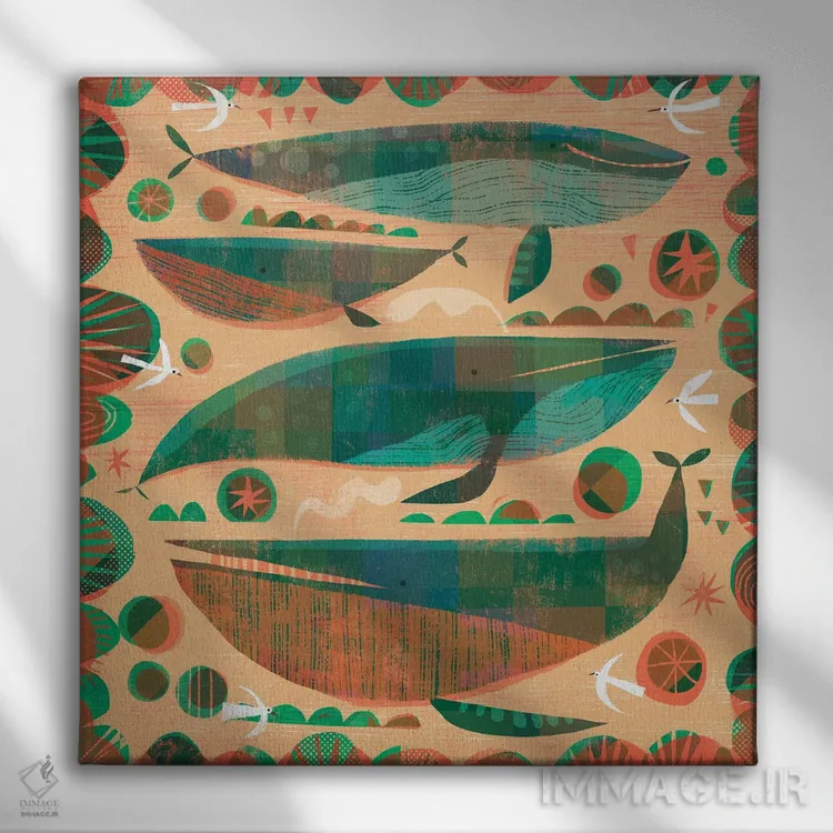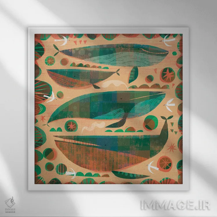 «نهنگهای سبز» اثرِ «گارث لوکاس» میتواند برای دکورهای مینیمال، یک نقطهٔ توجه بسازد؛ برای راهروها و ورودیهای گرم پیشنهاد میشود. هر بار نگاهش میکنید، یک جزئیات تازه به چشم میآید.