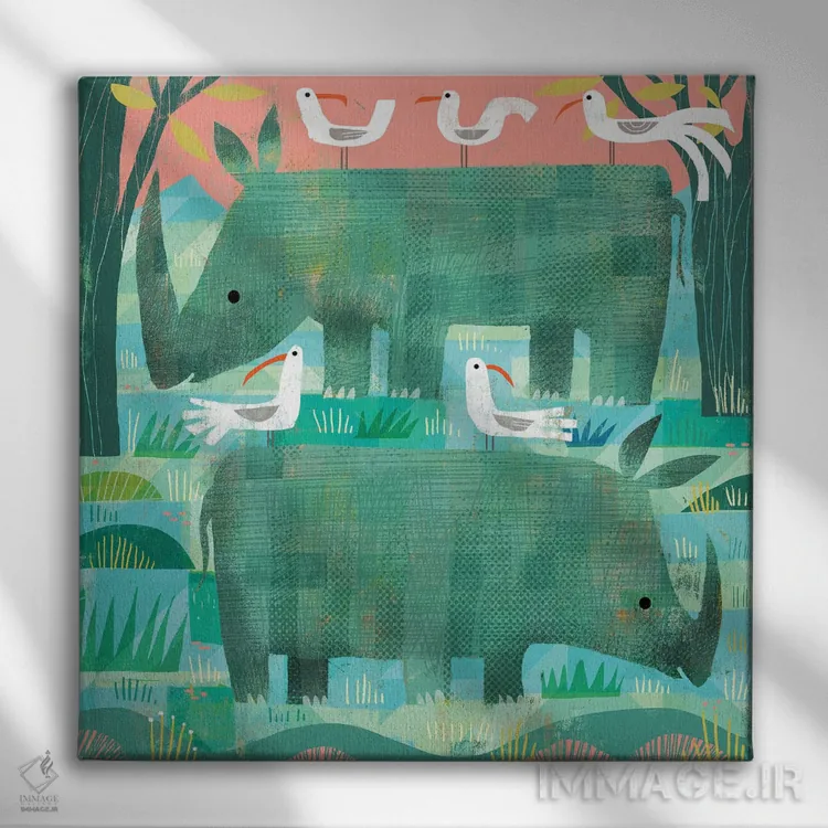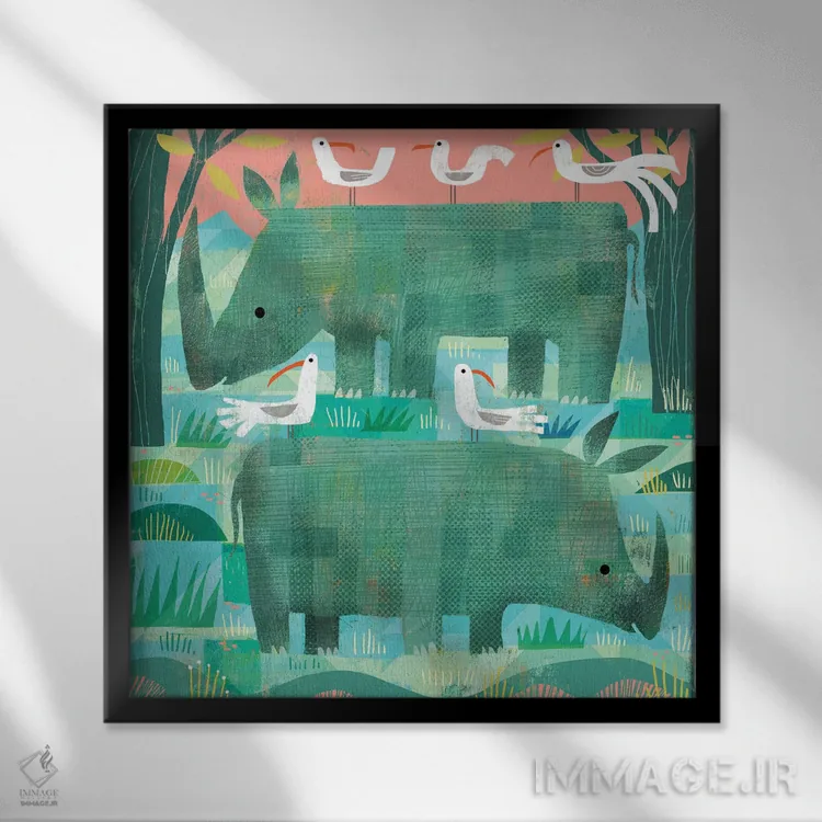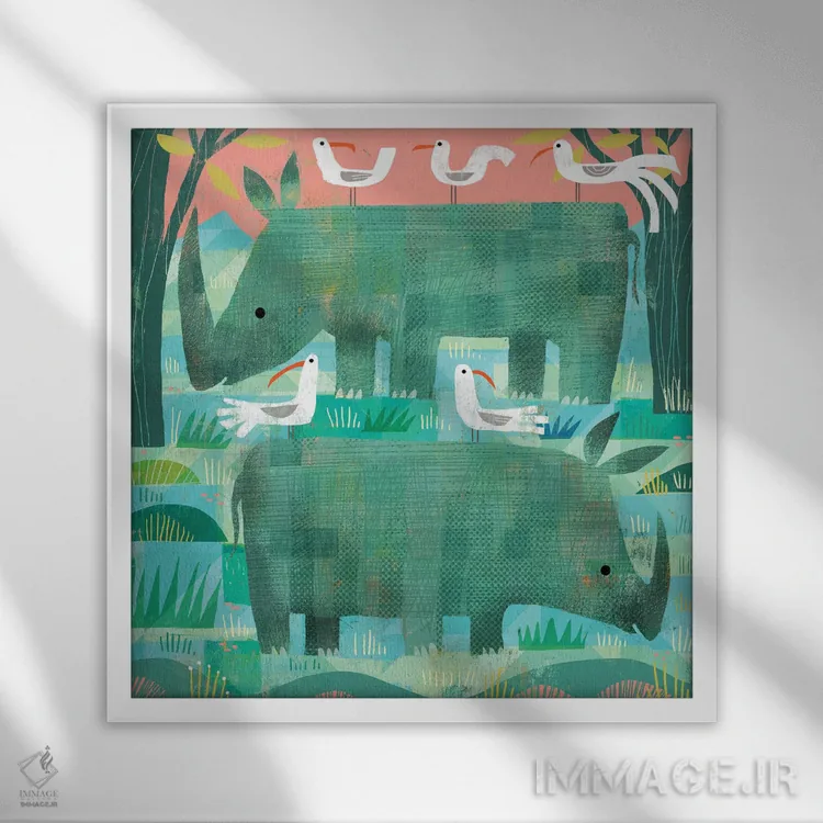 برای دکورهای صمیمی، «کرگدنهای سبز» اثرِ «گارث لوکاس» به فضا، گرمیِ ملایم اضافه میکند؛ برای کافههای کوچک و صمیمی انتخابی خوشسلیقه است. اگر دنبال اثر دوستداشتنیِ «بیغلو» هستید، این یکی دقیق مینشیند.