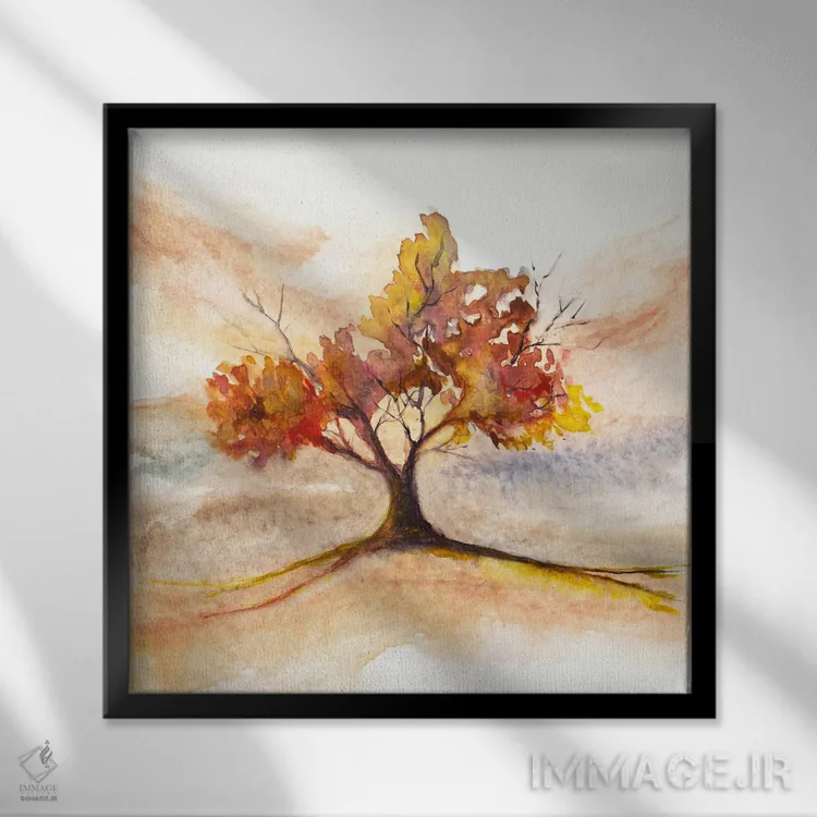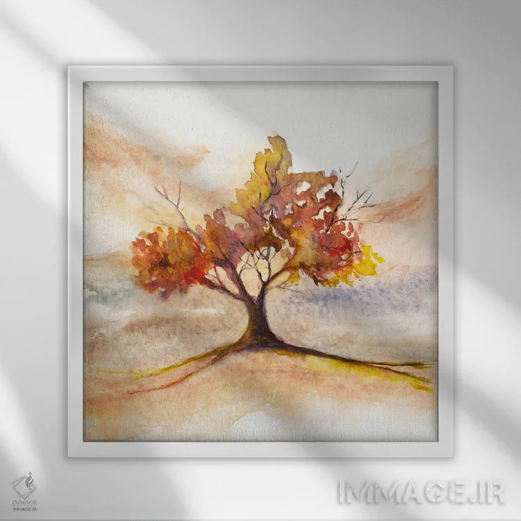 براساس پالت گرم اثر، قاب بلوط روشن (چوبی) پیشنهاد اول است و استخوانی ملایم مکمل. برای سفارشهای پروژهای با ابعاد و قابهای اختصاصی با ایماژ در تماس باشید.