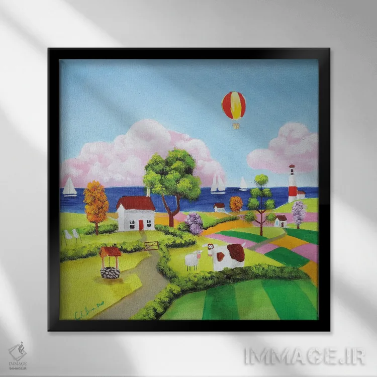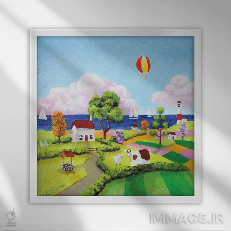 براساس پالت ترکیبی اثر، قاب تیک گرم (چوبی) پیشنهاد اول است و مشکی مات (فریم متوسط) مکمل. برای سفارشهای پروژهای با ابعاد و قابهای اختصاصی با ایماژ در تماس باشید.