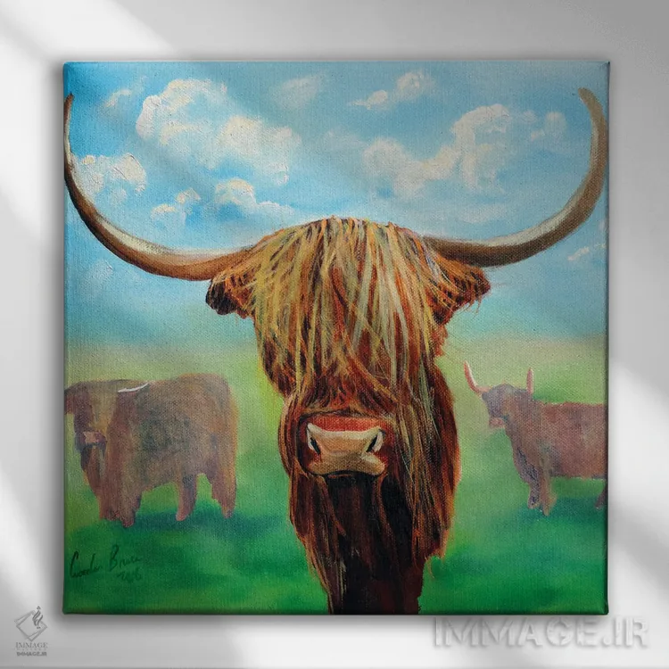 برای اتاقی که به یک عنصر دوستداشتنی نیاز دارد، «گاوهای کوهستانی (اسکاتلندی)» اثرِ «گوردون بروس» در کنار رنگهای خنثی، تضاد دلچسبی میسازد؛ برای دکورهایی با رنگهای خنثی انتخابی خوشسلیقه است. هم فضا را گرم میکند، هم شلوغش نمیکند.