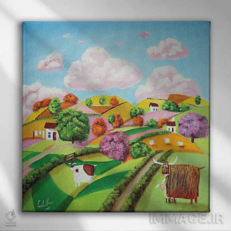 «تپههای نرم و مزارع وصلهدوزیشده» اثرِ «گوردون بروس» میتواند یک لبخند ریز به چیدمان بدهد؛ برای فضاهای روستیک یا بوهو پیشنهاد میشود. به دیوار، قصه میدهد—اما قصهای آرام و شیک.