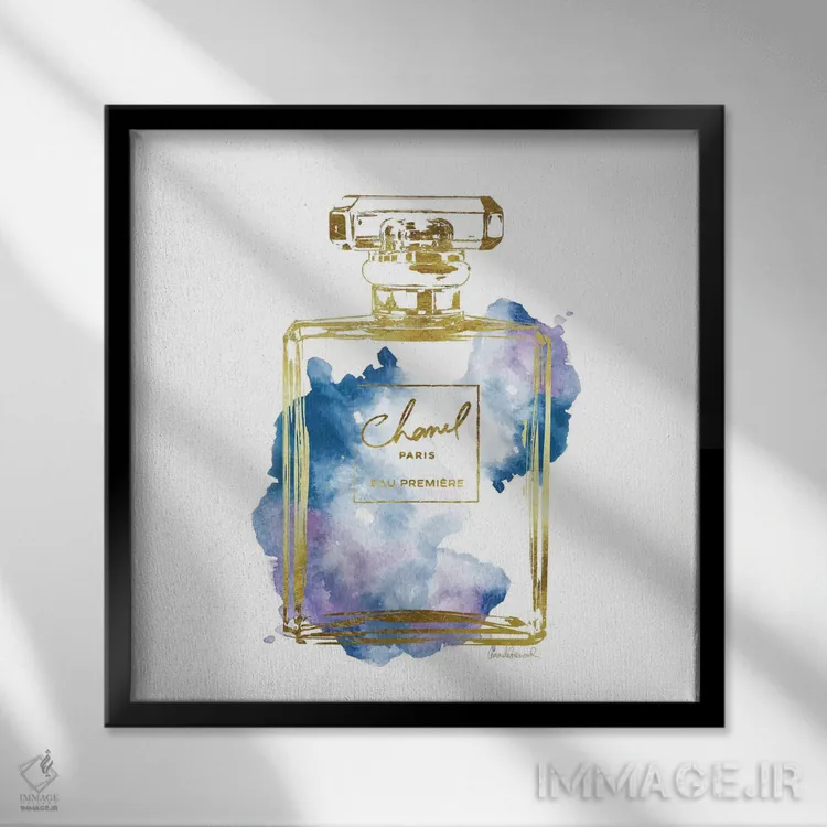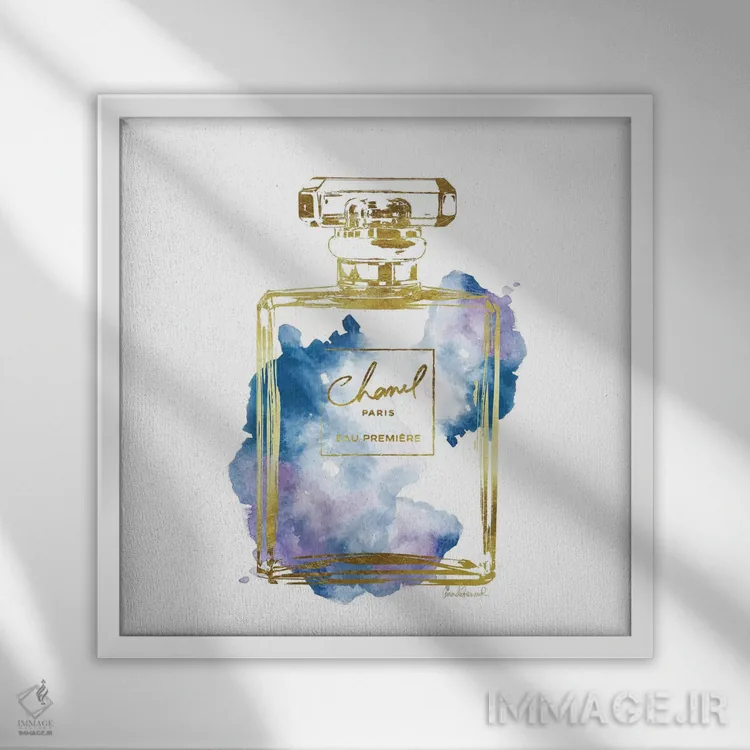 تابلو بطری عطر طلایی و آبی اثر آماندا گرینوود