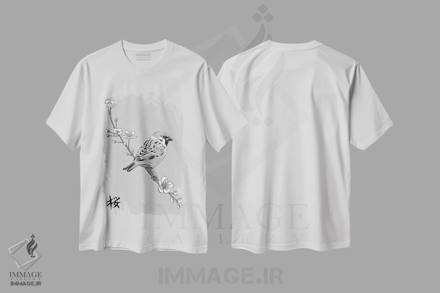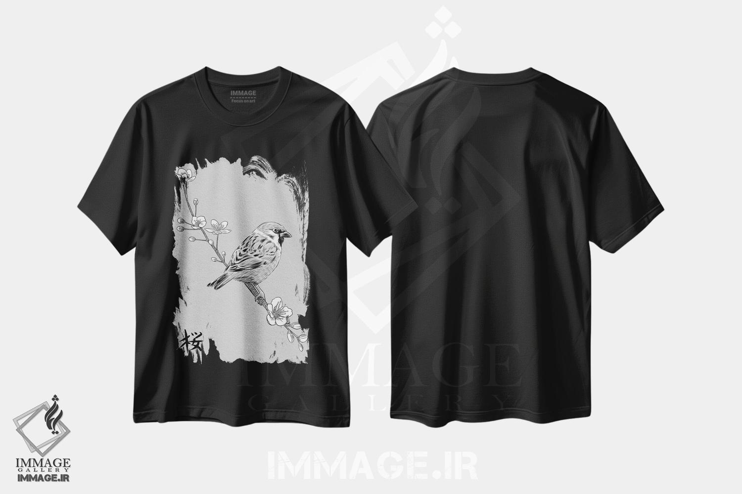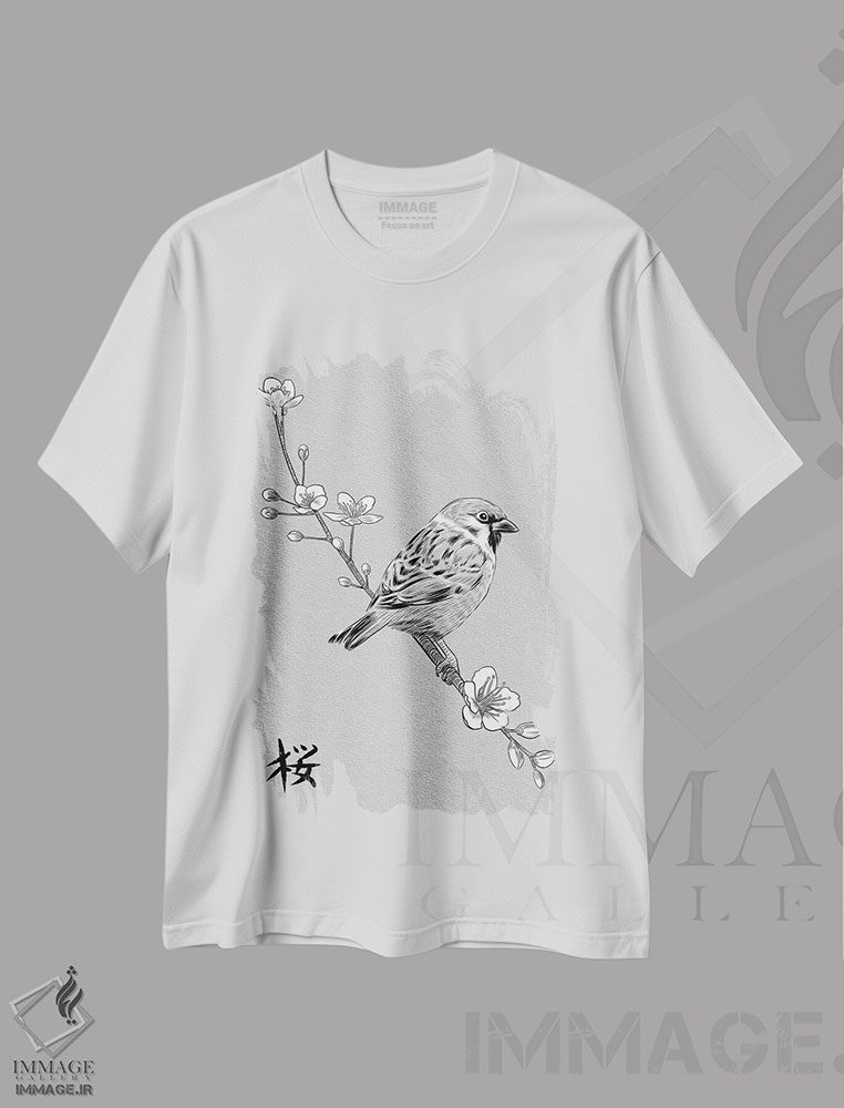 تیشرت طرح دار گنجشک کانجی، هنر دیجیتال سیاه و سفید اثر آلبرتو پرز | immage.ir